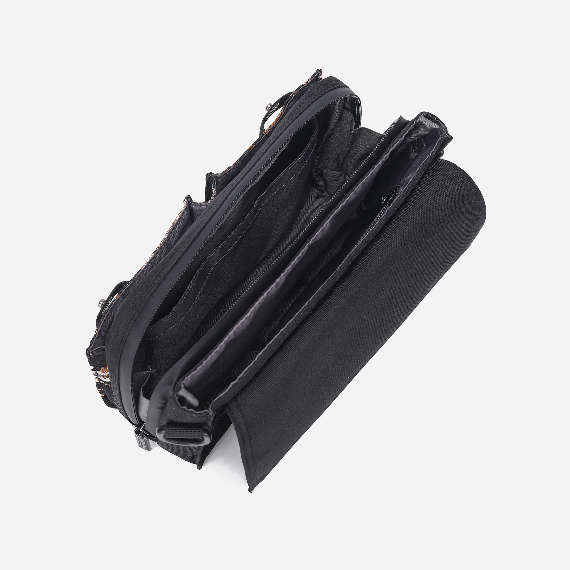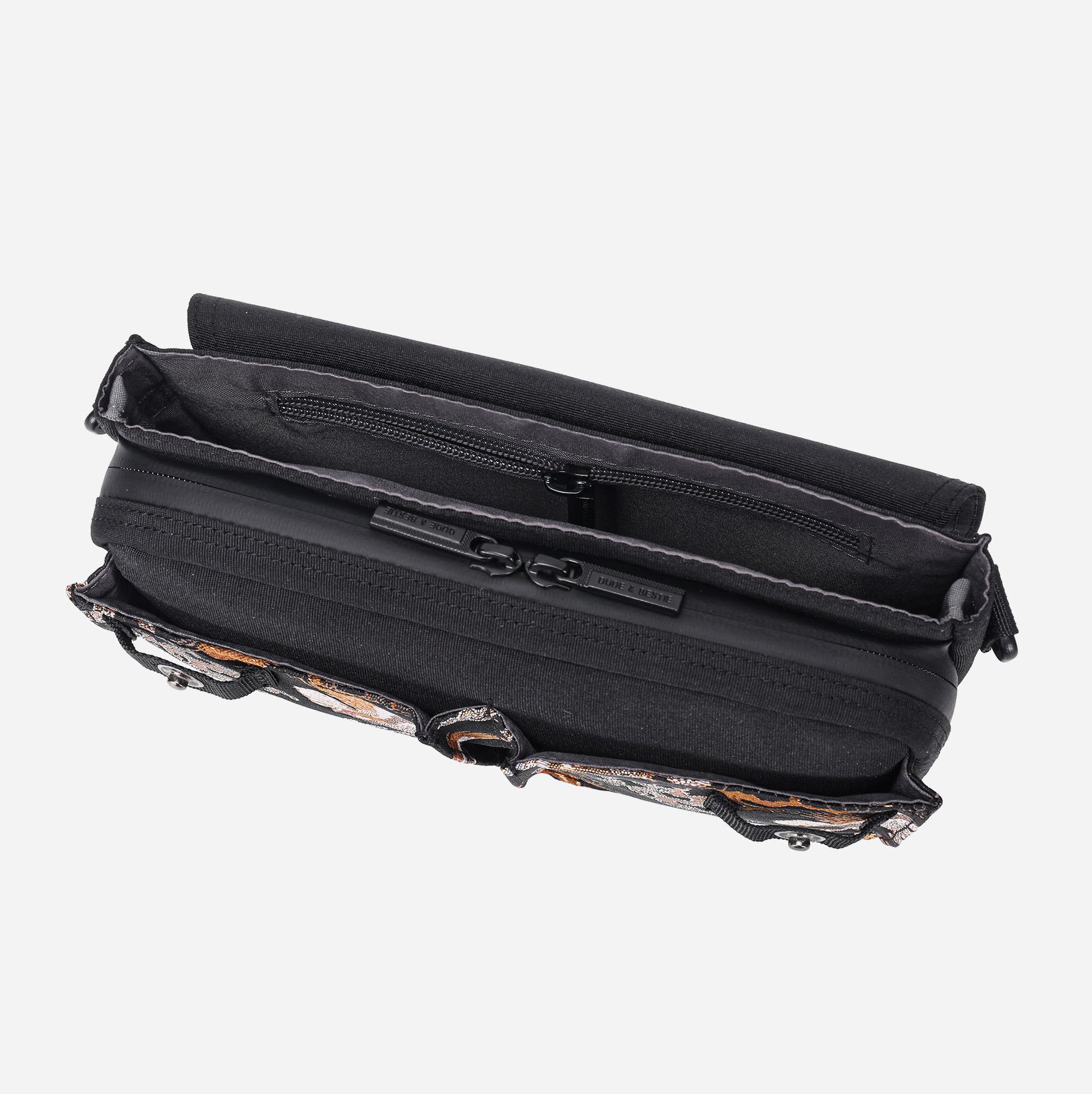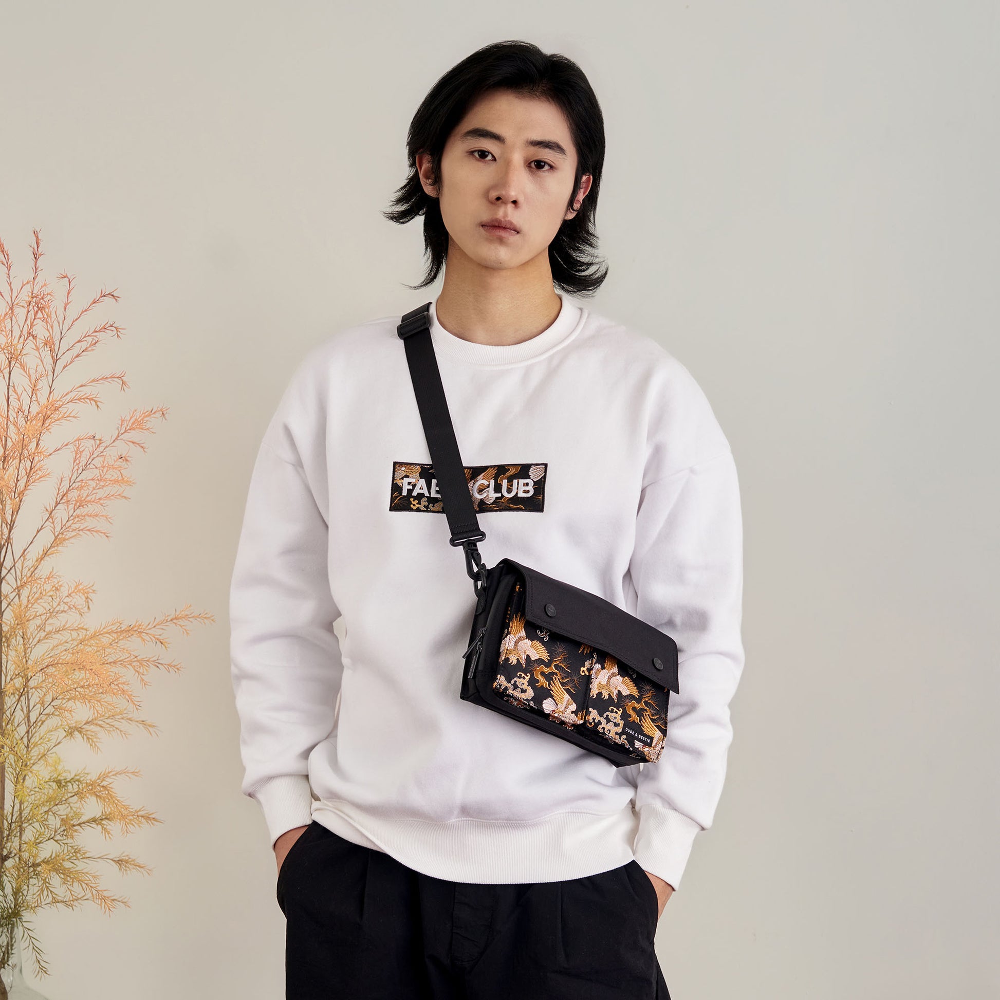 Crafted with traditional Japanese Nishijin-ori fabric from Kyoto, this sophisticated crossbody bag features the iconic "Matsu-Taka" (Pine and Eagle) motif, symbolizing prosperity and longevity. Designed for both style and functionality, its sleek silhouette and thoughtful compartments make it a versatile companion for daily adventures or special occasions. Embrace the timeless artistry of Japanese craftsmanship while enjoying the convenience of a modern, practical design.