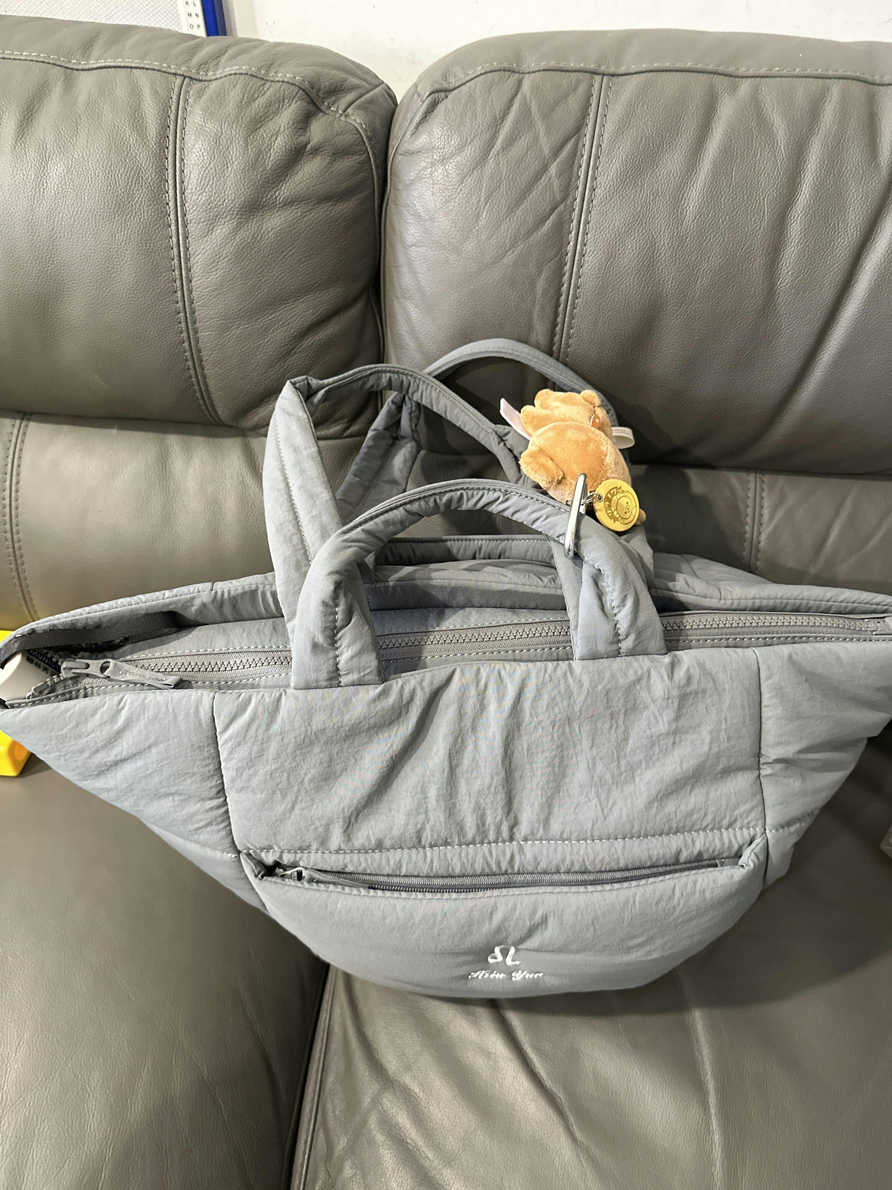 A lightweight, ultra-soft, and spacious tote bag designed for comfort and versatility. Featuring a quilted puffer texture and dual padded handles for hand or shoulder carry, it’s perfect for work, gym, or weekend errands.