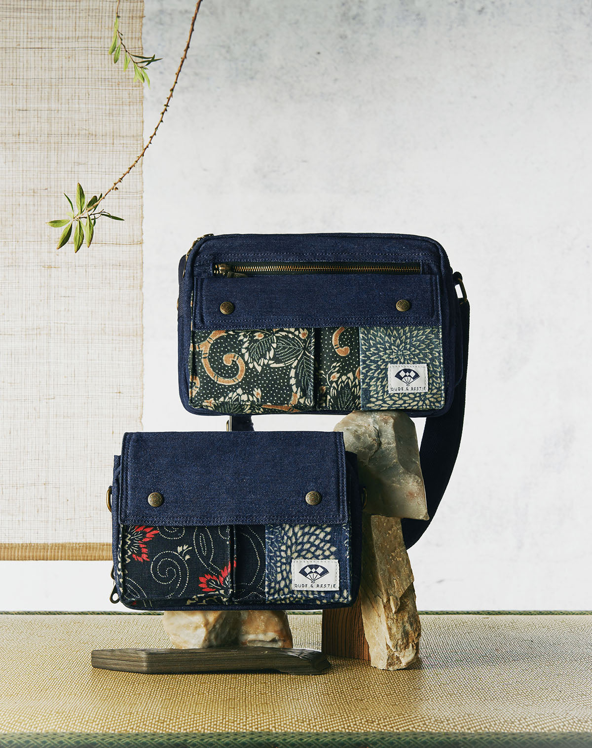 精緻的合作款,採用日本古靛藍染布料製作的兩款斜背包。
